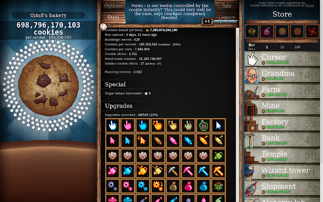 This is an undeniable unique game. Code and illustrations copyright: Orteil.